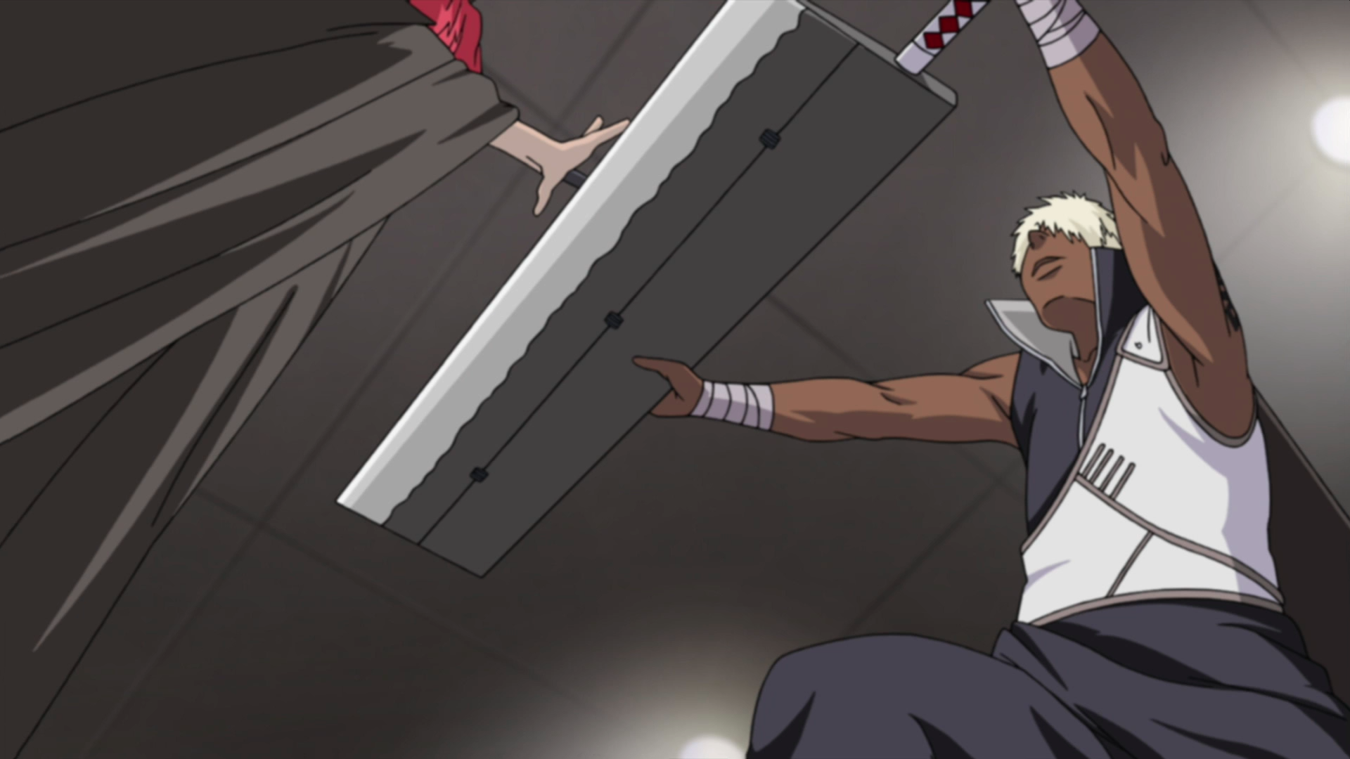 W czasie swoich zmagań z uciążliwą bronią przeciwnika, starałem się spoglądać na to, czy aby nie przygotowuje on dla mnie jakiejś niespodzianki spod swoich zwiewnych ubrań, które były dość dobre do przechowywania niebezpiecznych przedmiotów. Poza tym wiedziałem, że muszę jak najszybciej zatopić Tasak w ciele przeciwnika. Czułem to w swoim ciele, a właściwie w dość poważnych brakach chakry. Teraz musiałem już polegać tylko na tym wielkim kawałku żelastwa i swojej sile oraz sprycie. Musiałem pozwolić ponieść się instynktowi walki i pokazać prawdziwą wściekłość rekina!