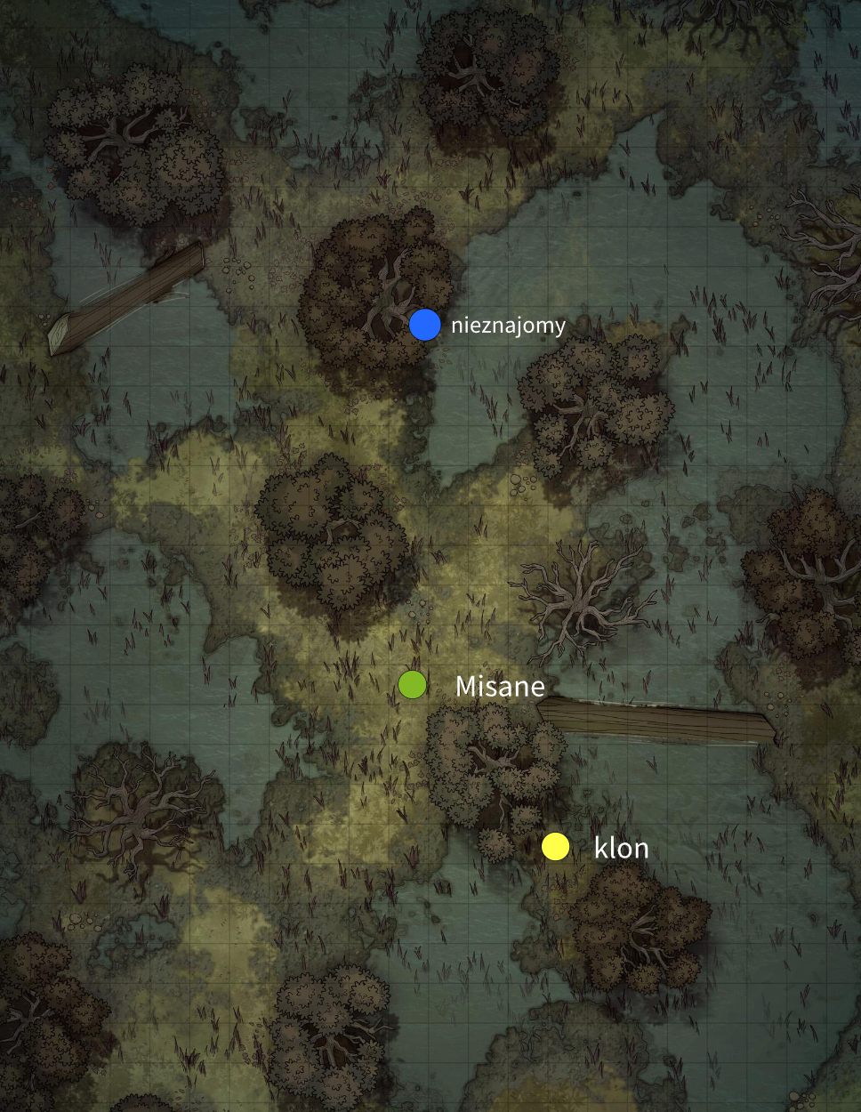 Misane, bazując na poznanej wcześniej mapie zarządcy , skierowała się w stronę bagien. Teren szybko zmienił się z leśnego poszycia w grząską, wilgotną ziemię, z której wyrastały pojedyncze, rachityczne drzewa i gęste kępy wysokich trzcin. Powietrze stało się ciężkie i duszne, przesiąknięte zapachem gnijącej roślinności i wilgoci. Dziewczyna poruszała się ostrożnie, badając wzrokiem każdy skrawek ziemi.